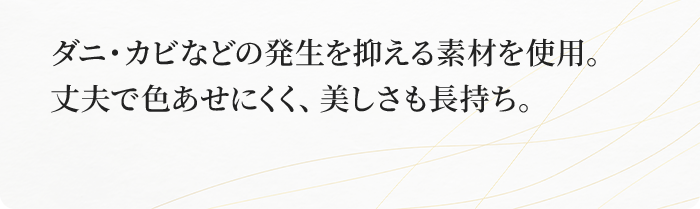 畳の上にじゅうたんを敷くのは、い草の呼吸を止めるようなもの。掃除も行き届かず、ダニやカビの原因になります。 新しい畳の香りと感触を存分に味わってください。素足で歩くと畳表にツヤも出て、生き生きとしてきますよ。